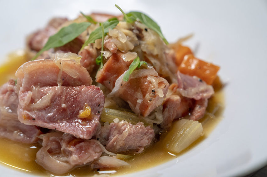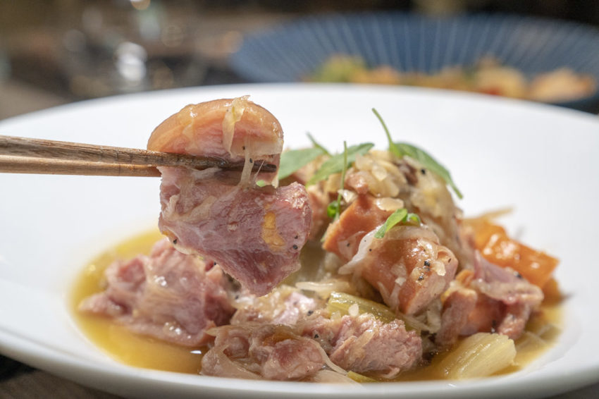 有些歐式餐廳會把豬腳烤的偏乾,但核桃鍋牛所料理的方式是用燉煮的