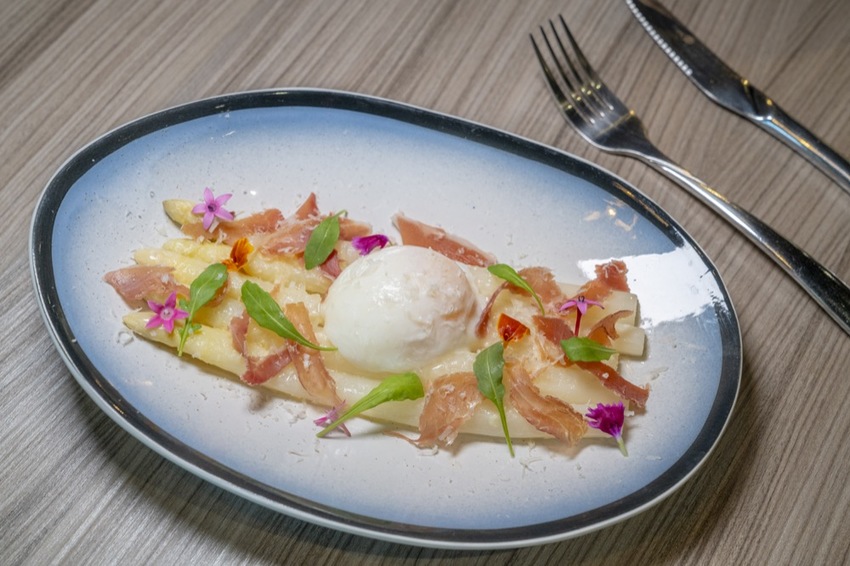 白蘆筍香甜多汁,和生火腿的鹹香搭在一起很適合
