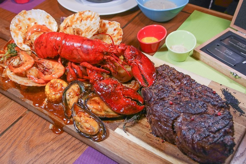 慢烤美國 Choice 等級52盎司戰斧牛排拼海鮮
