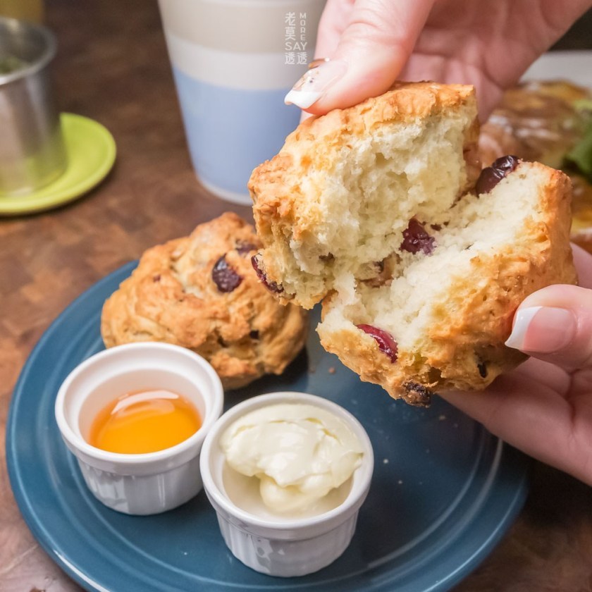 ↳把蔓越莓用蘭姆酒浸漬,每一口有淡淡的酒香充滿鼻腔,我相當喜歡的司康鬆軟的口感,旁邊有德文郡奶油與蜂蜜可抹在司康上。