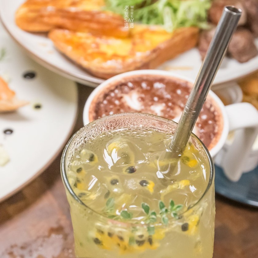 ↳用台灣的鳳梨熬醬,搭配檸檬汁、金桔汁、百香果粒再加入氣泡水調製,攪拌均勻後飲用。