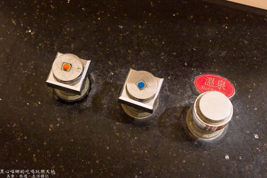 由左至右分別為熱水、冷水、溫泉水,基本上一定是先放溫泉水,然後再依自身狀況加入熱水或冷水做調整。