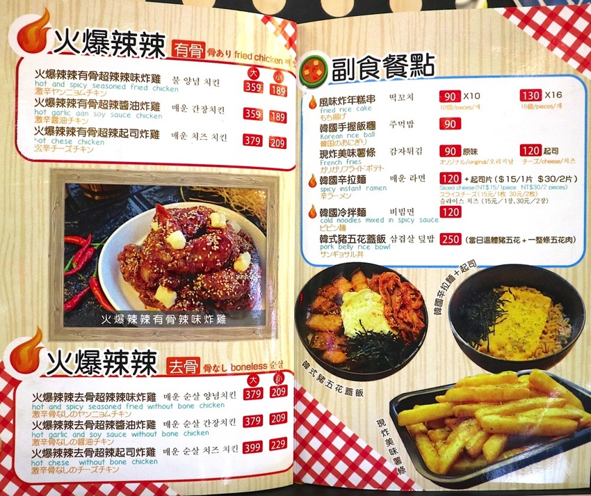店家菜單如圖可見,韓式炸雞有分:有骨、去骨 兩種