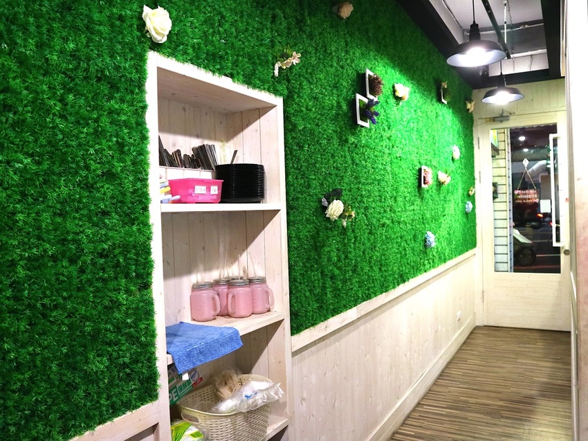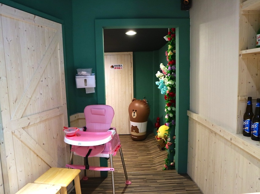 藍綠色牆面,還有Line的熊大、黃色小雞玩偶、花牆~大家快去拍照吧! ✧*。٩(ˊᗜˋ*)و✧*。