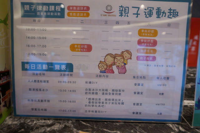 櫃枱旁還有許多旅遊簡介:南科贊美酒店L’arc Hotel也有很多親子活動,很多都是免費的喔!(有需要的可以像贊美酒店L’arc Hotel櫃枱人員詢問!)