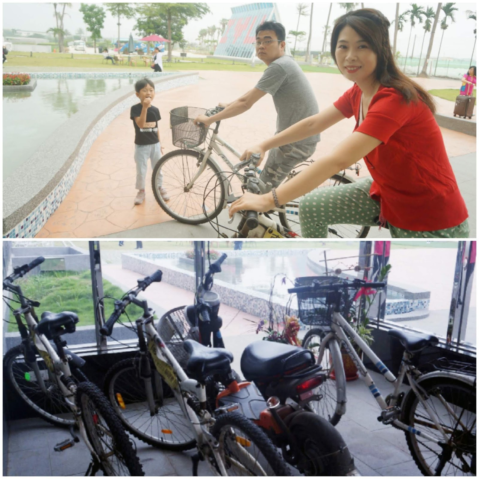 吃完早餐,來使用贊美酒店的設施:免費腳踏車租借,贊美酒店的腳踏車分成電動和傳統腳踏式腳踏車,想練練腳力的可以選擇傳統腳踏式腳踏車,屎蛋媽為了小腿的美觀,選擇了電動腳踏車,哈哈!