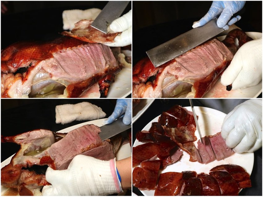 印象中,他們有規定,一隻烤鴨一定會片成16份,