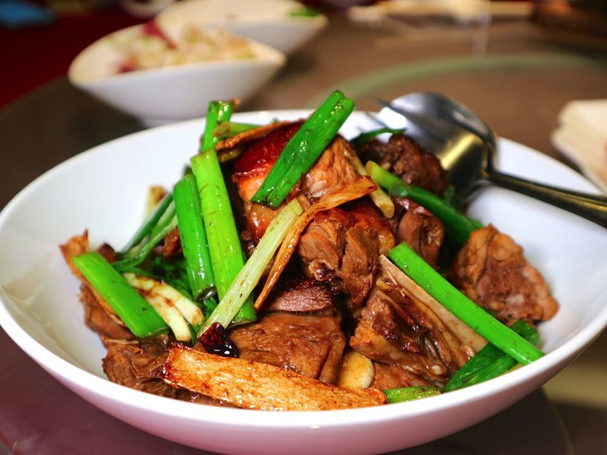 《薑蔥炒鴨架》常見的薑蔥炒法,味道可不簡單!沒有過多的醬汁,但是每一塊鴨肉都很入味,吃起來也完全不柴口!完全不用擔心硬梆梆、咬不動,超厲害!