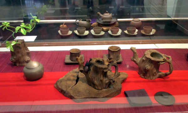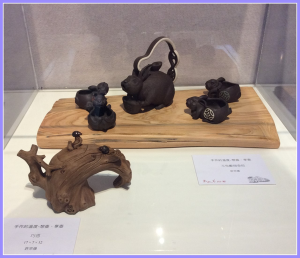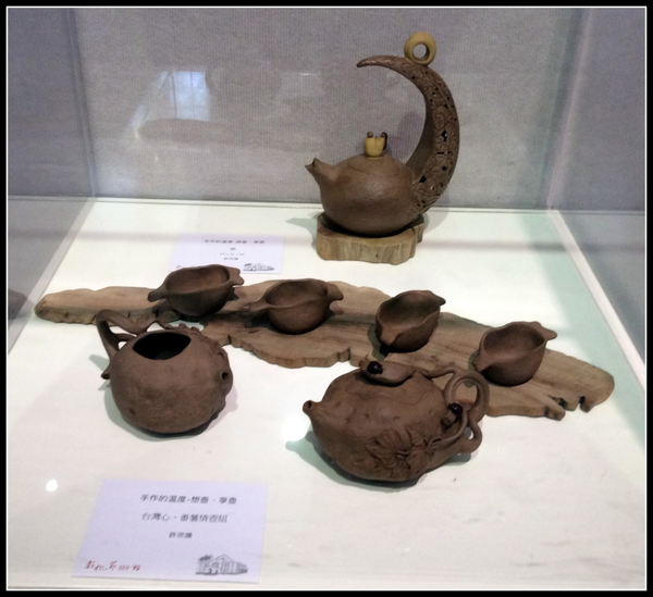 第一區手捏壺作品,以雕塑的手法,傳達枯木、