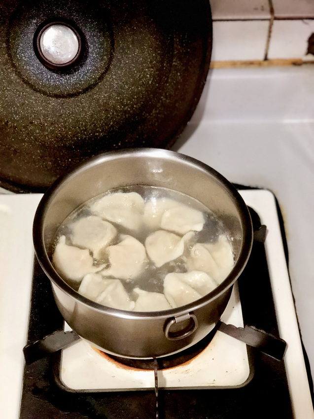 想不到要吃什麼的時候煮水餃真的是很方便的選擇,水滾入鍋煮個三五分鐘,還真不輸泡麵的方便性,也有肉的營養