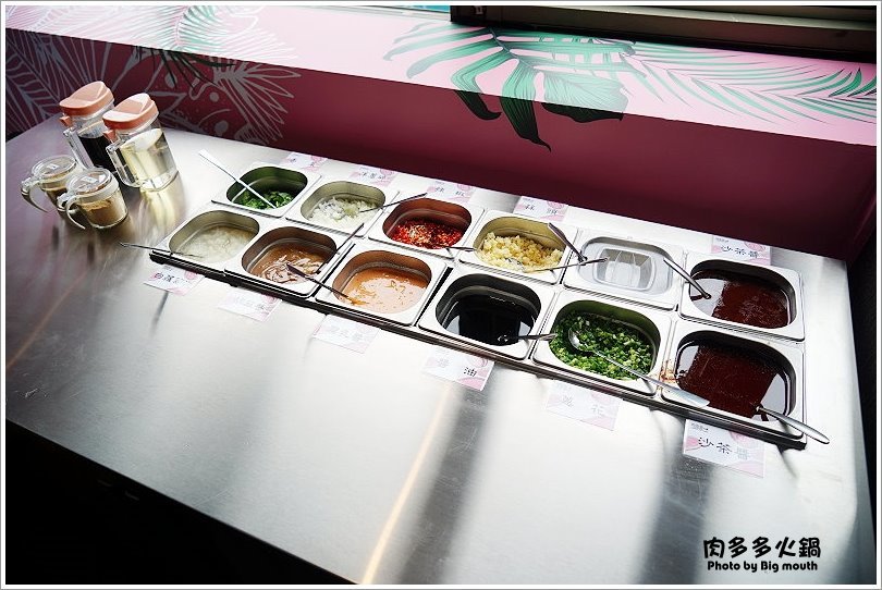 ▼另外還有醬料自助區,像是沙茶醬、醬油、蔥花、蒜泥、辣椒、洋蔥、白蘿蔔、花生粉、白醋、烏醋、香菜、腐乳醬、胡麻醬等通通應有盡有,算是還滿齊全的!