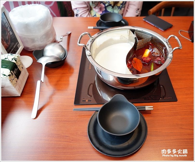 ▼沒多久鴛鴦鍋上桌啦!一旁還有提供餐具、衛生紙、小型垃圾桶等,讓人享用起來更加方便!
