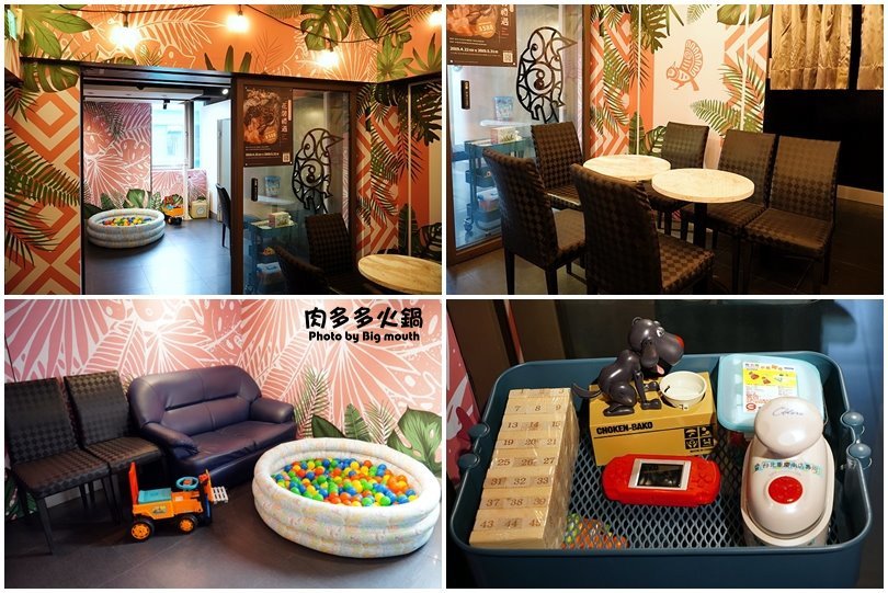 ▼全新二代店以「一店一風格」為發想,像這間內部環境看起來全都是粉紅色系搭配白、綠的清新風格,塗鴉式的手感加上恐龍與叢林風,明亮又有創意!一進到裡頭就能看到一個球池,一旁還有提供各式玩具,等待進場用餐的時間就能讓小朋友可以先玩一波,吃飽喝足再來玩一波(笑)!