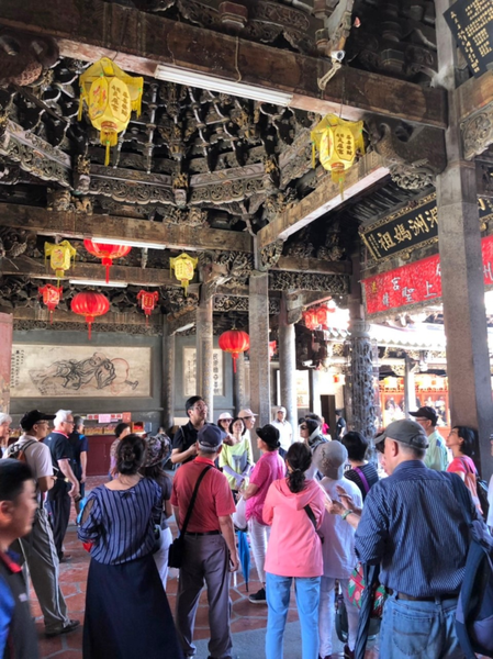 曾老師帶引著團員,在[鹿港天后宮]的八角藻井