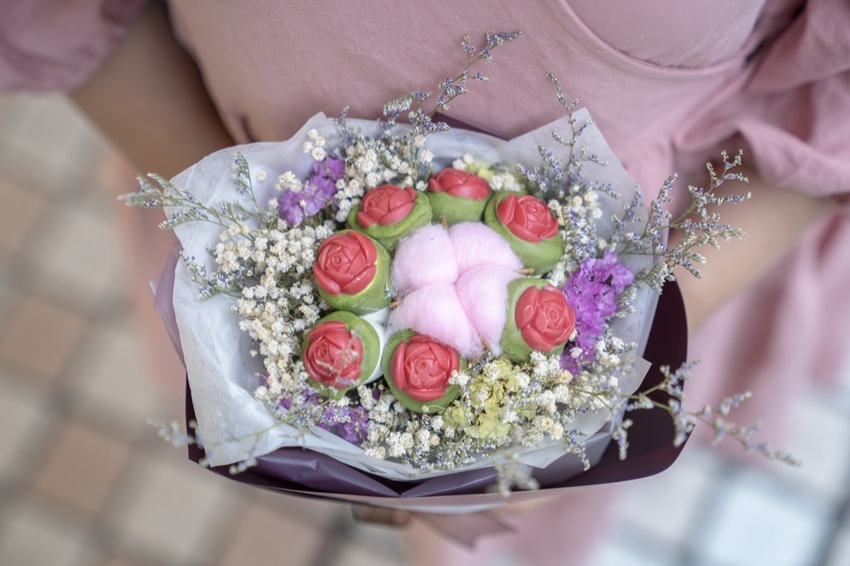 底部有棉花糖,搭配乾燥花就是一束好美的巧克力花束