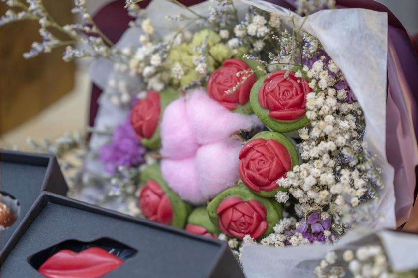 玫瑰巧克力花束也好精緻,玫瑰部份全都是用巧克力製作