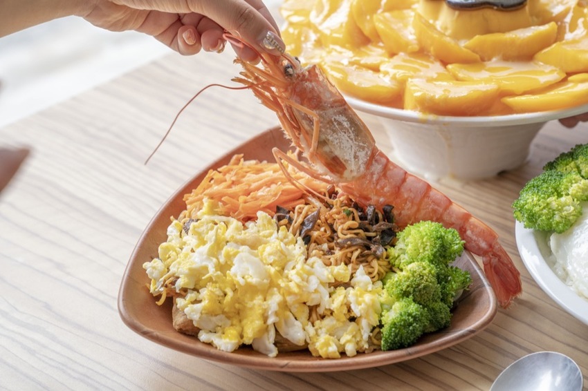 加價天使大蝦,新鮮Q彈的大蝦與炒蛋木耳