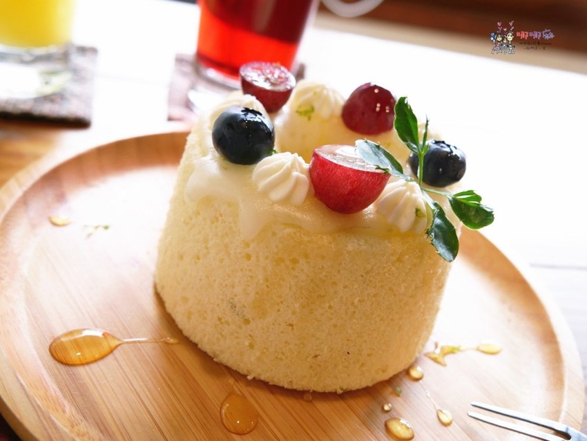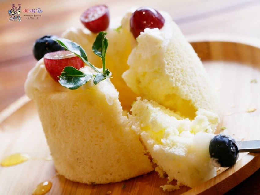 我們點的三個甜點裡面,最吸睛的當然是老奶奶檸檬戚風,這也是甜點中的經典吧!通常都是用檸檬磅蛋糕,不過他們改成用戚風,口感也比較蓬鬆柔軟一些。