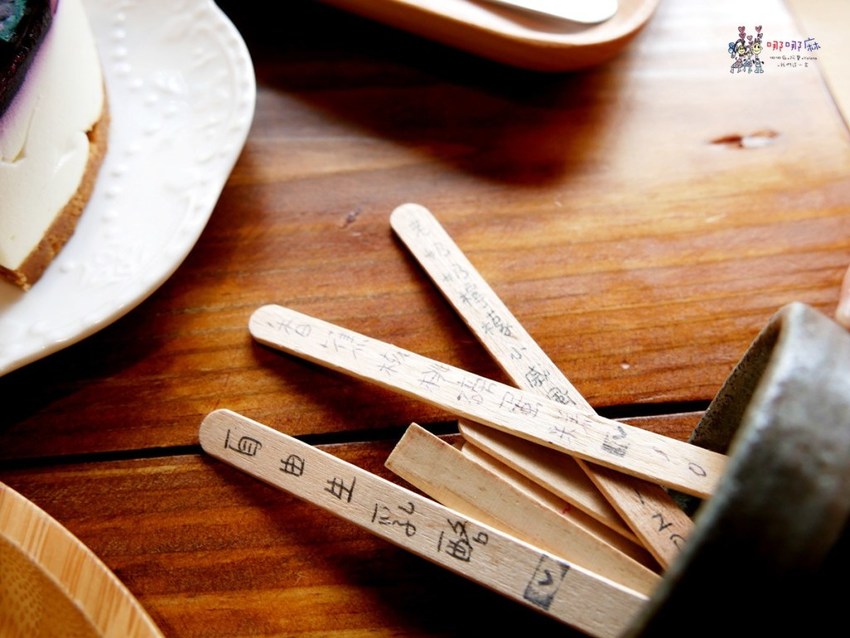 甜點的部分就在桌上的杯子裡面的竹籤,很有趣的感覺,如果不知道要吃什麼,可以用抽籤的方式決定吧!