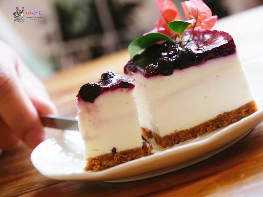 而藍莓生乳酪則是令我們驚豔的,上面一層藍莓果醬,不會太甜膩,而底下的生乳酪的部分口感很綿密,不像有時候會吃到的那種太滑嫩的塑膠感,而且有清爽的奶香味,真的就是乳酪蛋糕啊!