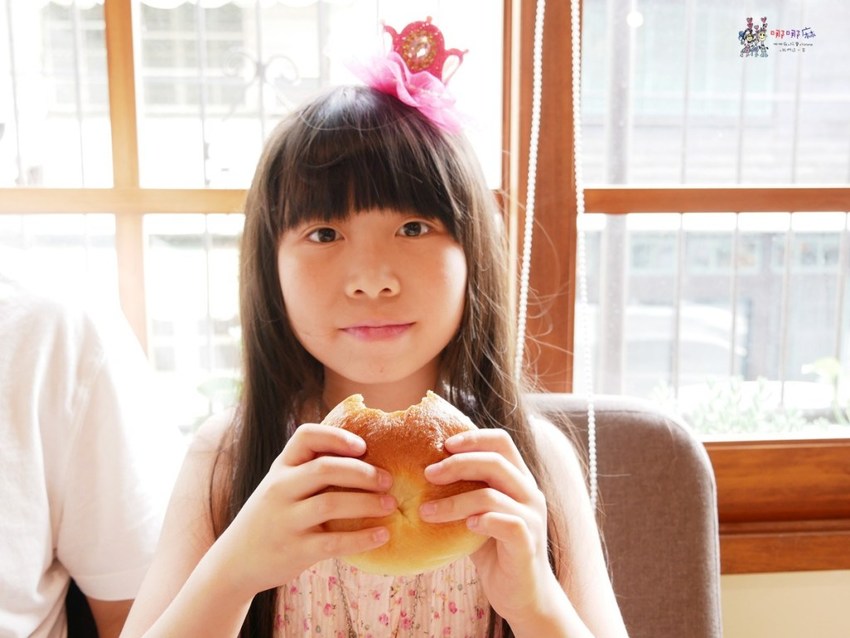 他們的香蕉核桃磅蛋糕的口感比較沒那麼乾,旁邊還有一點堅果醬可以沾,我覺得還蠻好吃的,不過阿寶已經三兩下就吃光了。