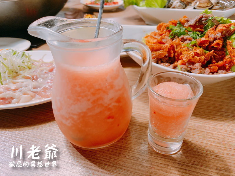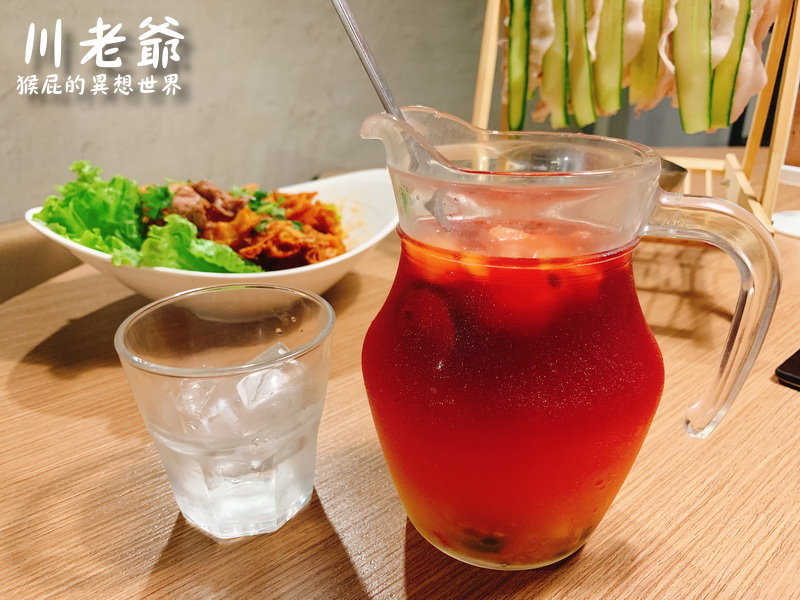 每桌都有附贈一壺洛神花冰沙,解油膩也解辣歐