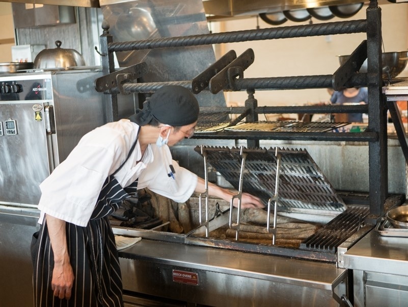 主餐燒烤香氣十足都要歸功於廚師與爐具,Que原木燒烤餐廳是以台灣本地的荔枝樹或龍眼樹原木,來作為餐點燒烤用的主火,讓食材更帶有原木的香氣與煙燻,還可以看到百萬級西班牙爐具上Beech Oven的Logo