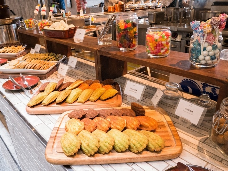甜點區是我個人滿喜歡的地方,有餐廳自製的手工瑪德蓮跟餅乾,還有巧克力噴泉跟搭配的棉花糖,要不是吃不下了我可以每個都來一樣,甜而不膩,每個口感都很清新,作為完美的句點。