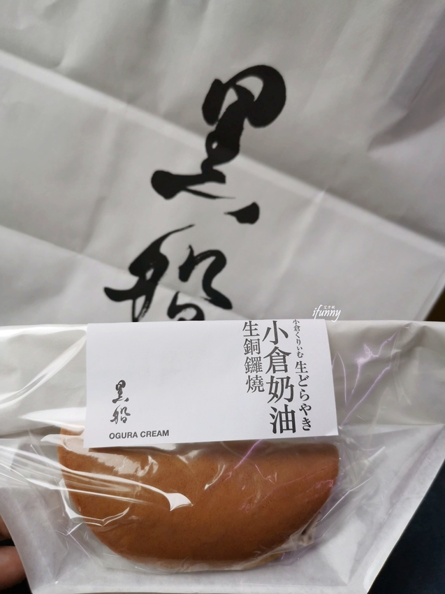 散發黑糖甜香,Q彈外皮的銅鑼燒曾創下單月熱銷十萬個紀錄。這個是夾入紅豆奶油的口味,珍珠生銅鑼燒是搶手貨,不易買到。