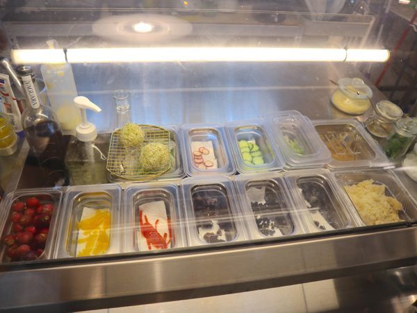 很特別的用了透明展示櫃存放蔬菜,店內的有機無毒蔬菜都是跟農場特別合作,看看這一排各式各樣的蔬菜,在沐的沙拉裡面菜的種類真的超多樣✨
