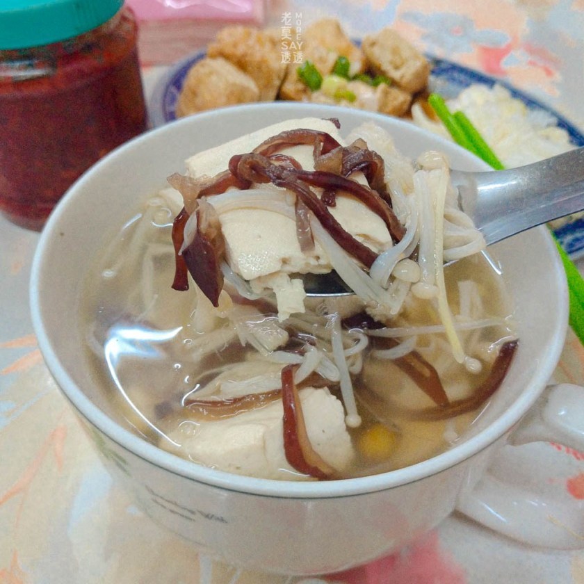 ↳甘甜的湯頭來自於樹子的甜味,豆腐搭配金針菇與黑木耳絲,口感有層次。