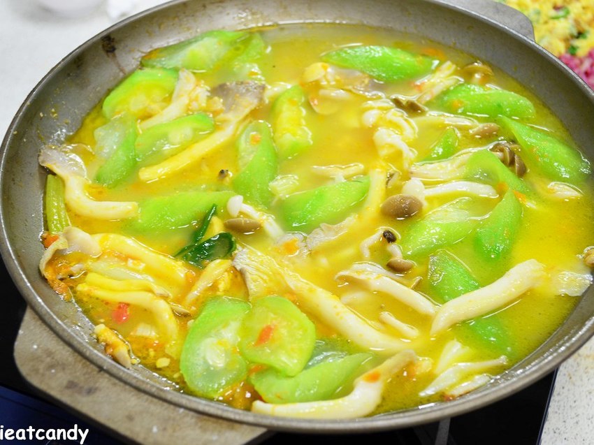 陶板蟹黃絲瓜算是中規中矩的菜餚當中找出一點創新的感覺,澎湖絲瓜據說也是相當有名,老闆將蟹管肉、紅蘿蔔泥及些許香料製作而成,透過當下蒸煮,將味道與絲瓜甜味融合,老闆說這道可是熱銷餐點呢!