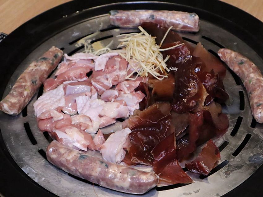 肉品是雞腿肉、小肥牛及豬五花三選一,我們選了後者。