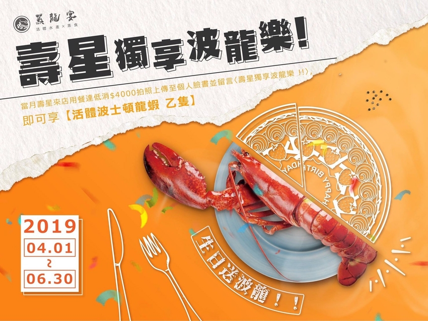 來蒸龍宴過生日吧!壽星當月可享免費波龍一隻欸,想想剛剛的彈牙蝦肉,一個人吃一隻艾方妮真的很可以!哈,這樣應該沒人可揪啦!美食大家一起分享會更好吃啦!