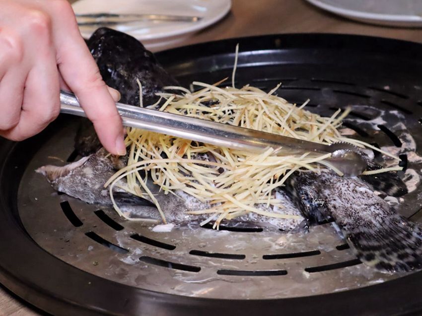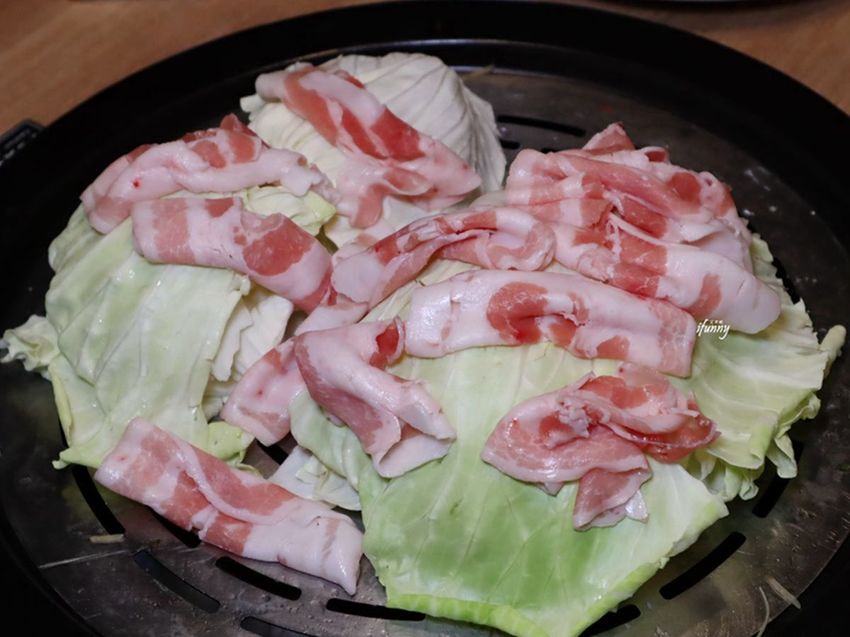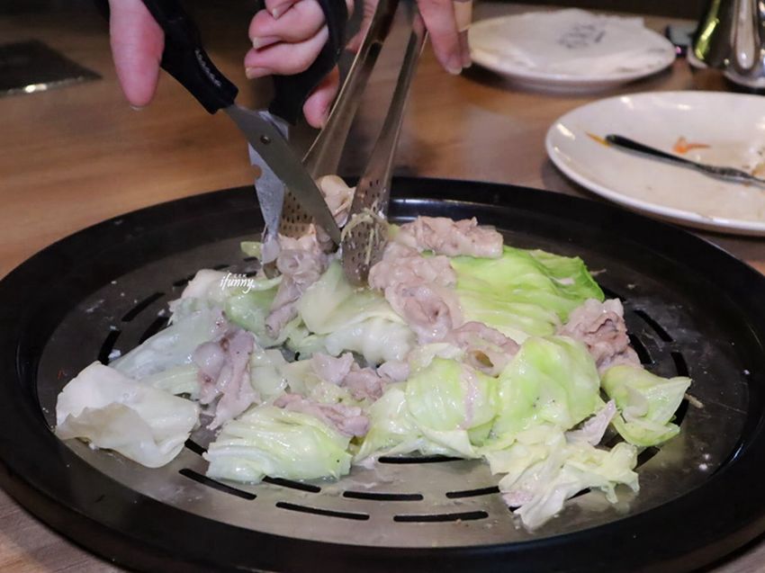 服務人員會貼心地把高麗菜剪開來,脆口的高麗菜及帶著Q勁油脂的五花肉,灑上點玫瑰鹽,就是道美味的餐點了!
