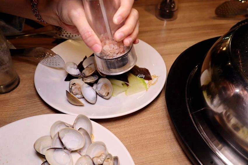 短暫的蒸煮時間,隨著開蓋的瞬間,白煙夾雜著海鮮的鮮味飄出。