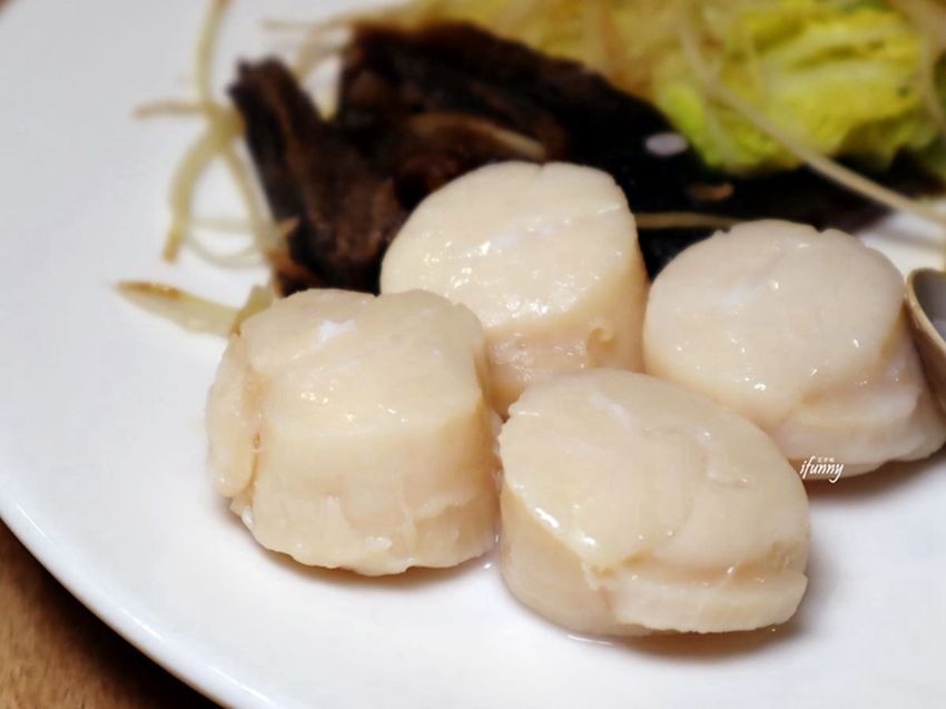 這鮮干貝在簡單的蒸煮下,保留著原本的厚實感,一咬下後鮮甜的滋味在口中炸開來,細緻的海味實在太美妙了!