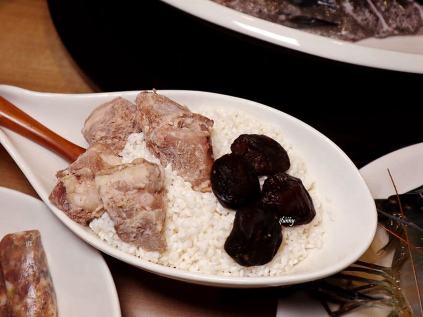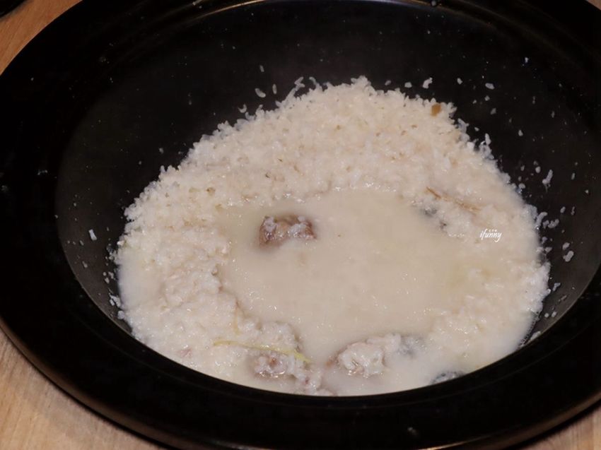 根本不需要太多烹煮的時間,就只是把料拌勻而已,然而那米粒從我們坐下的那一刻開始,它就在鍋中接受天然高湯的加熱,此時米粒已糊化,連排骨都軟嫩不已,滿滿的鮮味都濃縮在這粥裡面,吃上這一碗經由時間淬取的粥,真是太幸福了!