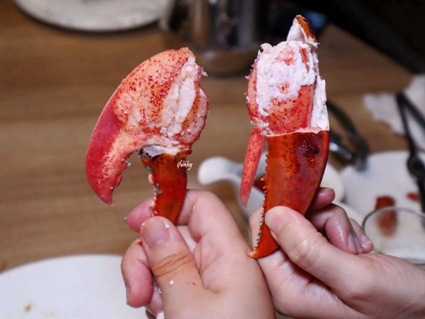 現撈的波士頓龍蝦,在廚房處理後,已分解成許多小塊。