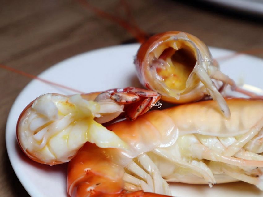 連蝦尾都能輕易取出,都知道這蝦有多新鮮了吧!一口咬下的蝦肉緊實Q彈,鮮甜多汁,超讚的啊!