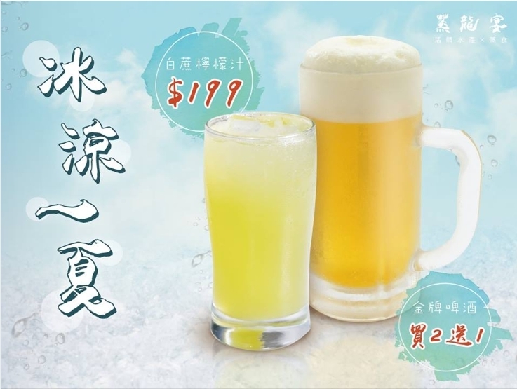 目前除了白蔗檸檬汁特價中,金牌啤酒買二送一也正在優惠中喔!