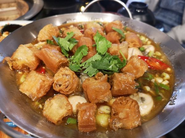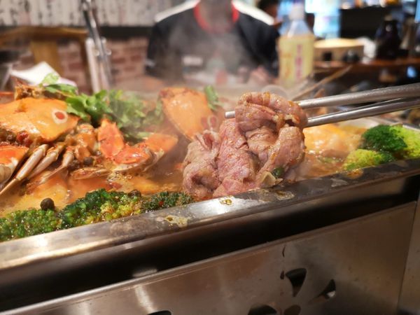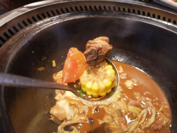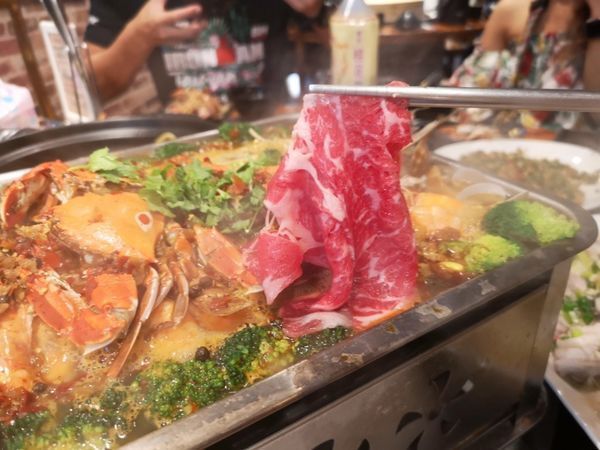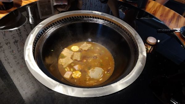 很喜歡重慶烤魚那香辣的湯汁,涮牛肉片也相當合適