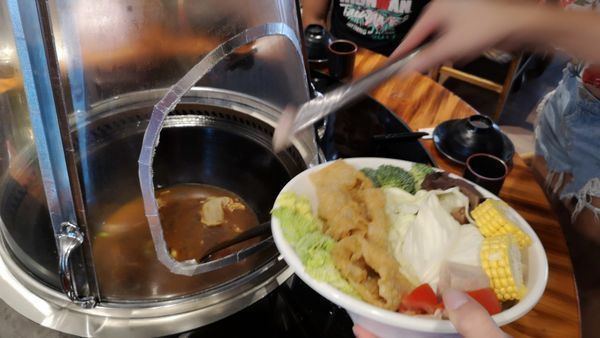 涮個兩三下就可以起來直接品嚐,微帶粉嫩色澤,無論是的地鍋雞湯還是胡椒豬肚或是重慶烤魚的湯汁都非常的合適