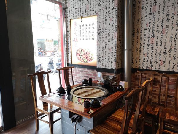 店內大多以4人方桌及圓桌為主,畢竟中間有個大大的圓鍋,看著牆面上書法的牆飾壁貼及底下紅磚瓦牆,這麼唯美的風格真的在澎湖這裡也算是獨具風格