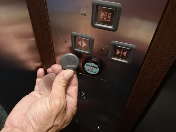 搭乘電梯上樓是需要感應扣的,下樓就不用了