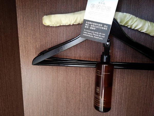 貼心的在衣櫃裡頭的衣架上還有提供衣物芳香噴霧