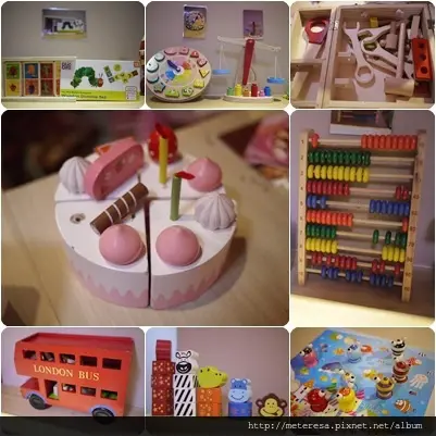 櫃子上還有販售一些小朋友的玩具啦或是餐具...等
