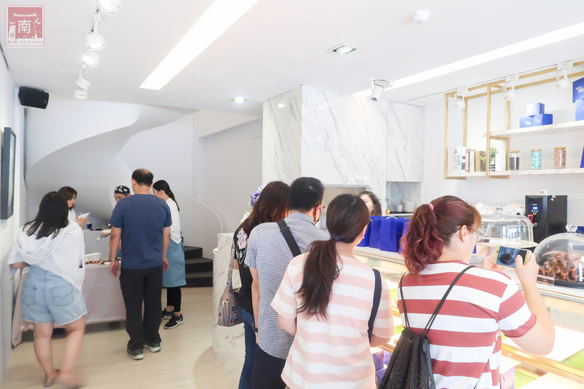 第一天開幕大排長龍,小編就排了一個半小時才買到甜點,平常很少在排隊的小編,也是因為義大利女主廚-派翠西亞‧班妮狄托(Patrizia di Benedetto)的魅力才讓我甘願排隊當個小粉絲,排隊時當然先跟看板合照一下,過過乾癮,也很期待等等進到店內可以親眼看到女主廚。