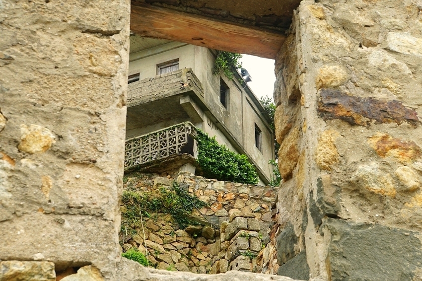西邊山矗立著荒廢的屋宇有著蕭瑟的美感,因為產權問題無法修整而荒廢實在可惜。