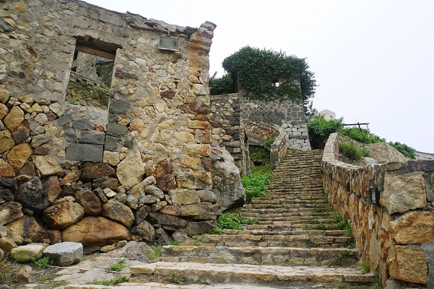 這裡是聚落的中心走道,也是聚落澳中,走道盡頭左後方是天后宮,供奉全馬祖唯一的「黑面媽祖」。